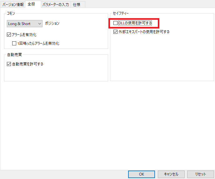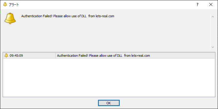 認証コード2は正しく実装されると下記の「DLLの使用を許可する」のチェックを外すとアラートが出てきます。