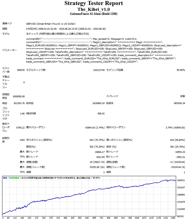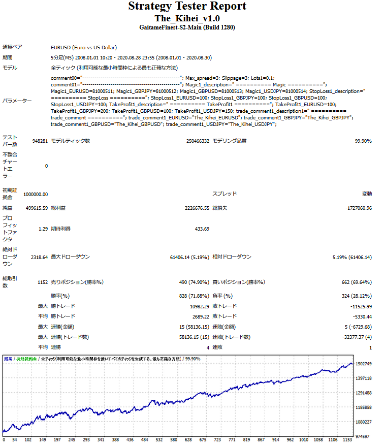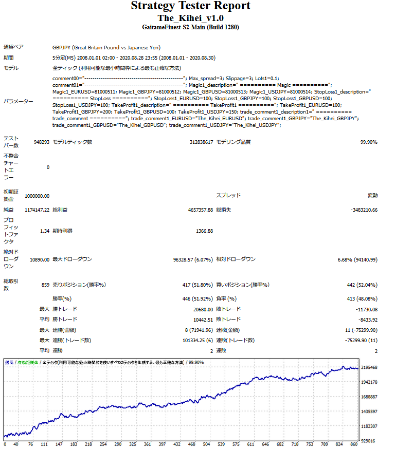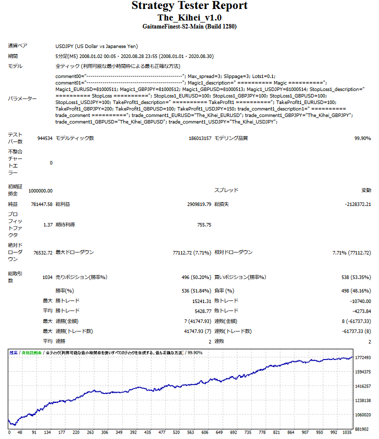 ・バックテストにTDS(Tick Data Suite)を使用しているため、通常のバックテスト(疑似ティック)に比べ、よりリアルの相場に近い環境でも優位性があることを確認しています。