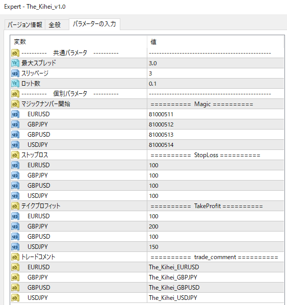 → 最大スプレッドのピップス数です。(設定値を超えた場合は取引致しません)