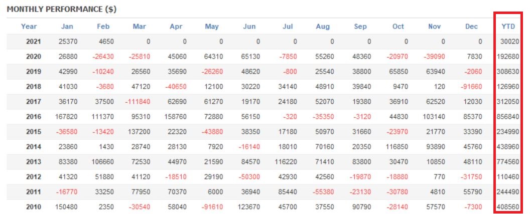 オンにすると全期間表示