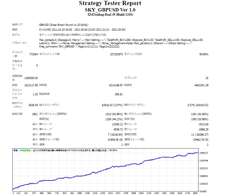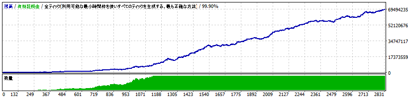 勝率は決して良くありませんが長期的にかなり安定したEAとなります。