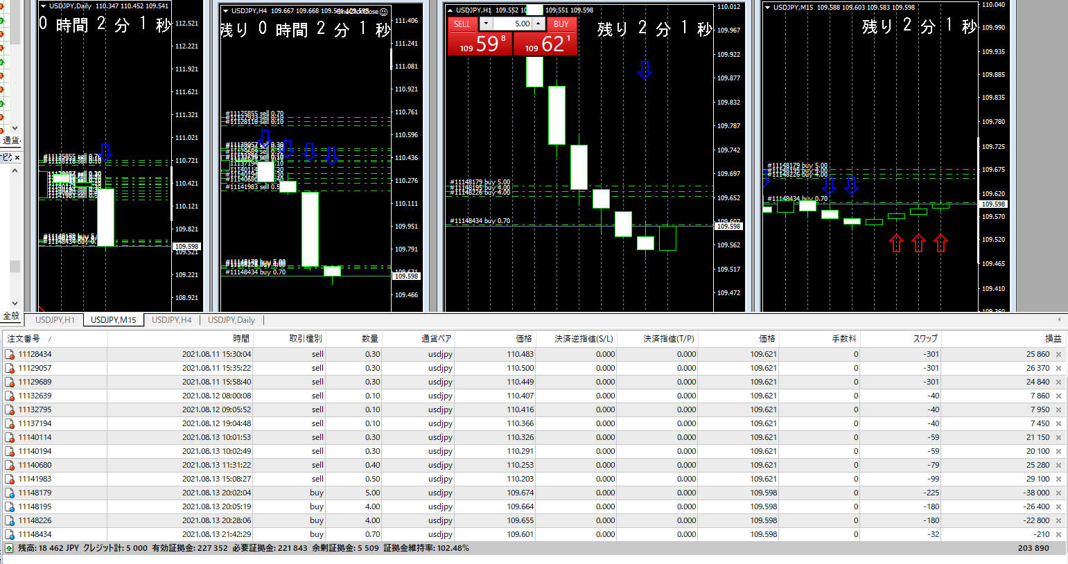 4時間足上矢印アラートで上昇