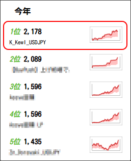 本EA[K_Kewl_USDJPY]は年間の獲得PIPSランキングで1位という結果になりました。